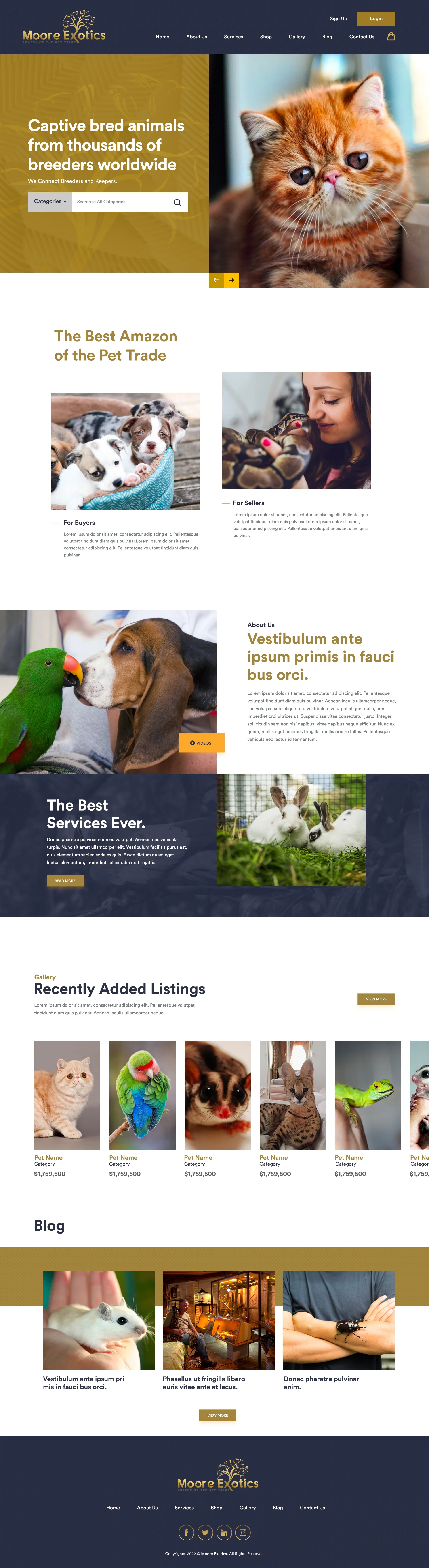 MooreExotics Bird Animal Landing page