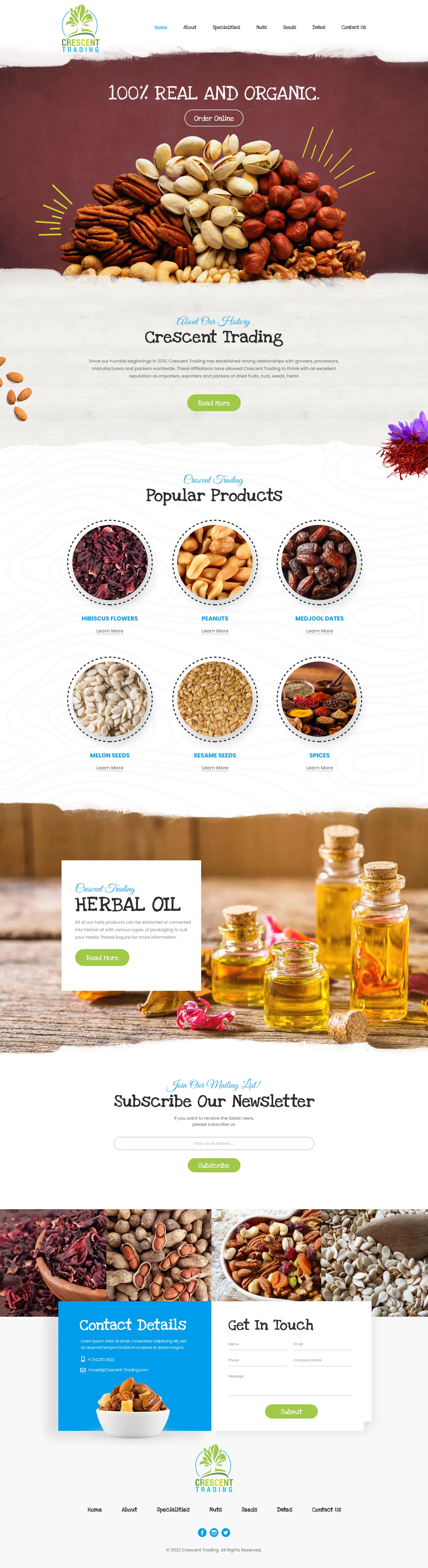 Crescent Trading Dry Fruit Herbal Oil Landing Page